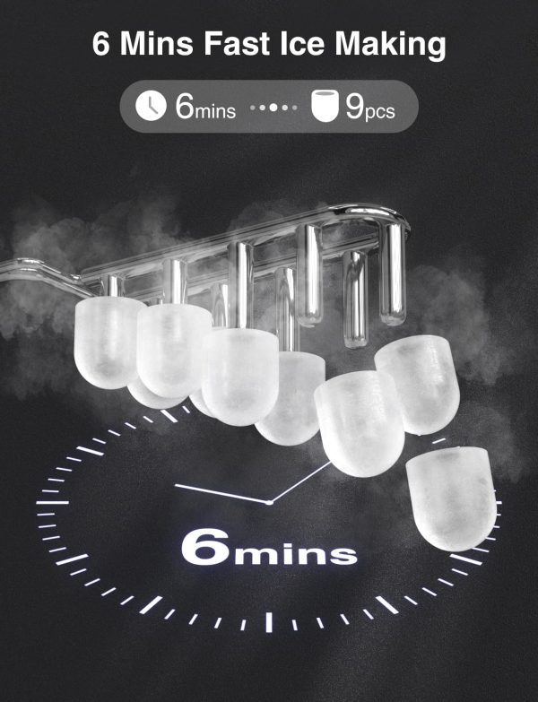 Self Cleaning Function: The ice maker countertop has a self-cleaning function, easily activating the function by pressing and holding the on/off button for 5 seconds.